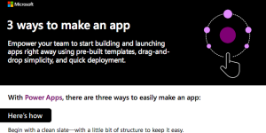 App development as easy as one, two, three. Microsoft Power Apps has three simple ways you can launch your app quickly. Start with a blank slate, use a data-driven model, or leverage existing templates. With Power Apps, your team can deploy apps fast and seamlessly. Learn how you can get started today: