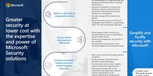 As more organizations move to public clouds, it’s crucial to secure your hybrid environments. Access this one-slide to learn how you can achieve greater security at lower cost with @Microsoft Security solutions, and connect with Affordable IT for more information.